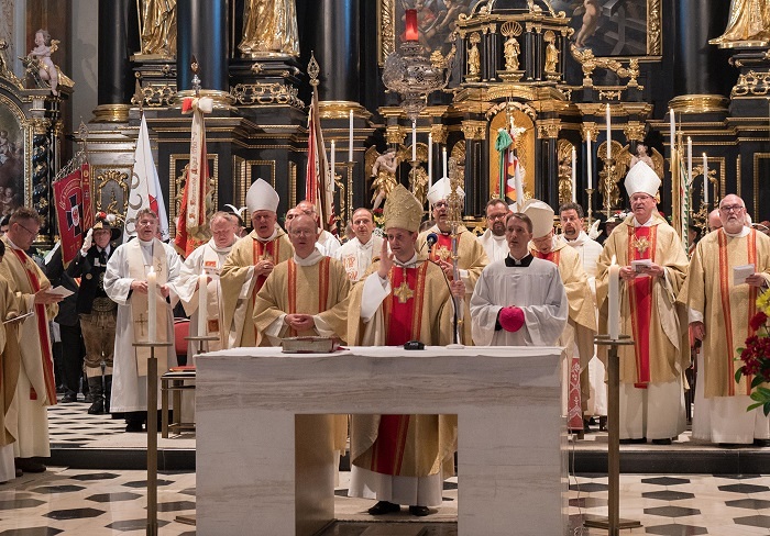 Der Innsbrucker Bischof Hermann Glettler hat am 4. Juni 2023 dem neuen Wiltener Abt Leopold Baumberger die Abtbenediktion erteilt und ihn in sein Amt eingeführt. Der Bischof sprach das feierliches Segensgebet und überreichte dem neuen Abt die Ordensregel sowie die Insignien seines Amtes: Ring, Mitra und Stab.