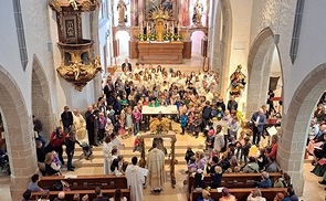 Zahlreiche Familien und Täuflinge folgten am 9. Februar 2025 der Einladung zur Kindersegnung, die den Ausklang bei Kaffee und Kuchen fand. Für die Kinder trat der Kasperl im Pfarrheim auf.